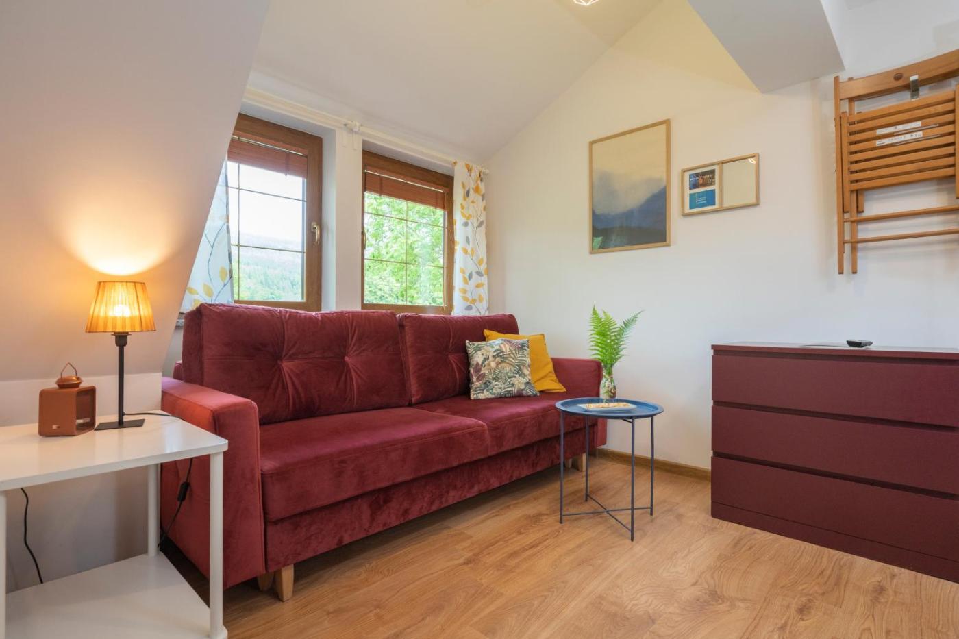 Apartament z widokiem na góry. Apartament ten obejmuje sypialnię i aneks kuchenny. Do dyspozycji Gości jest nowoczesna łazienka. Wyposażenie obejmuje narożną sofę. Apartament - 4 osobowy. Powierzchnia pokoju ok.: 27 mkw. ;